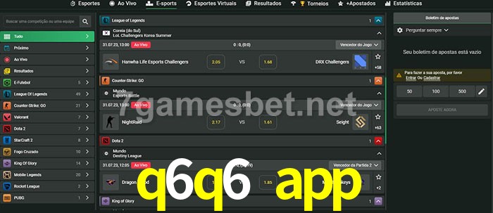 A aposta q6q6 app oferece aos jogadores a experiência mais conveniente de apostas em eSports!